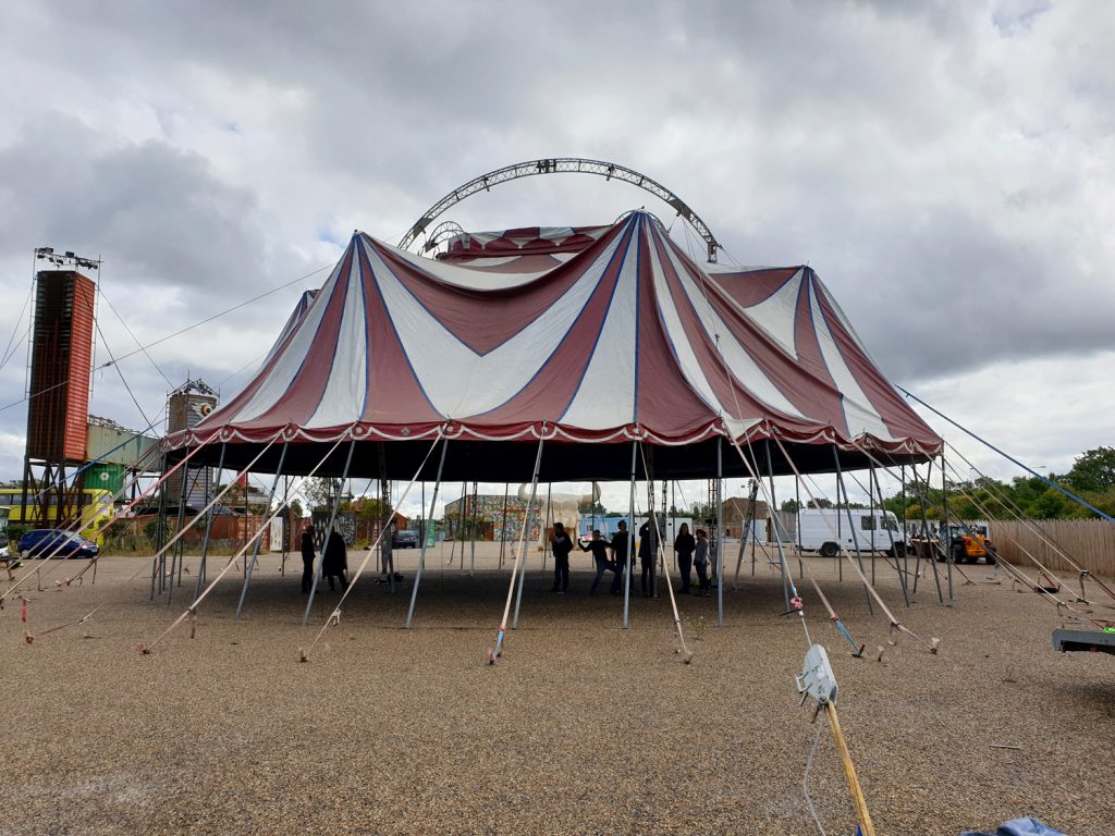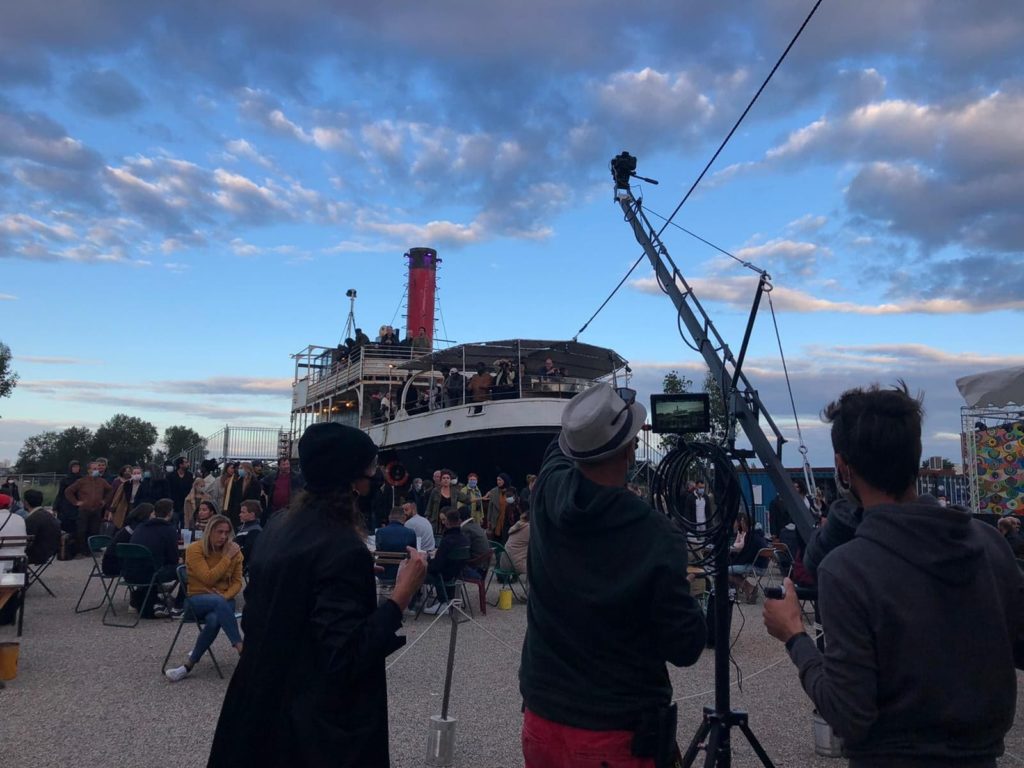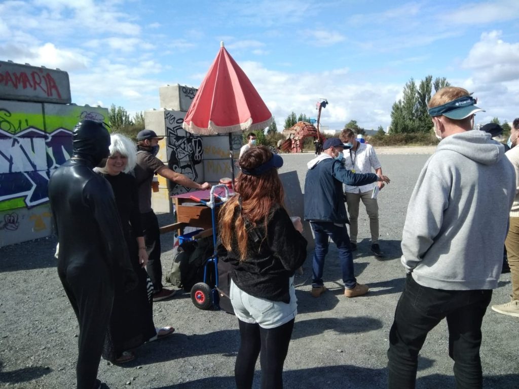 11h, arrivée des 75 figurant.e.s pour le tournage avec le Groupe Artistique Alice. Ils se retrouvent sous le chapiteau spectacle métamorphosé en énorme loge cosy, grâce au travail de fourmi réalisé par les équipes de production et de régie.