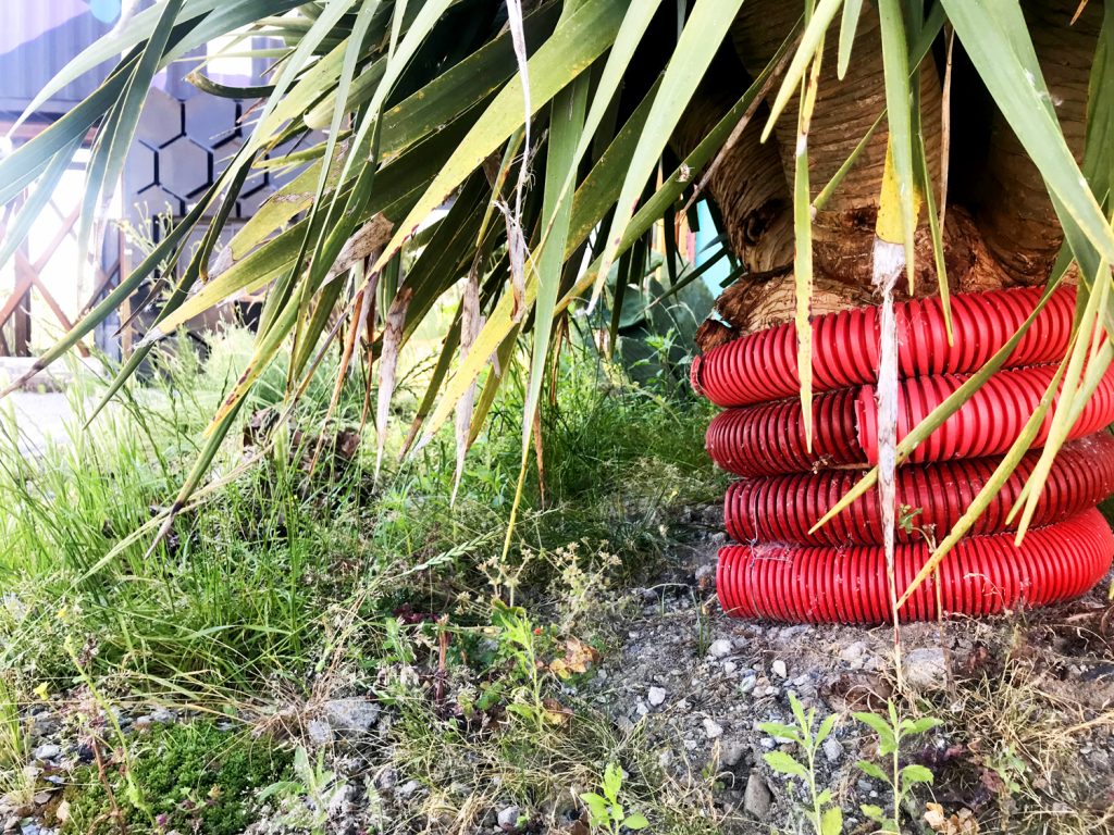 En ce jour, une petite brise vient énergiser les équipes qui retournent sur le site de Transfert pour la première fois depuis le confinement. Au programme, une mission essentielle au maintien de la vie sur Transfert : la libération des cactées. Pendant la période hivernale, pneus, tubes et feuilles mortes avaient recouvert les palmiers, cactus et plantes grasses pour les protéger du froid. Avec le retour des beaux jours, leur libération sonne presque comme un symbole.