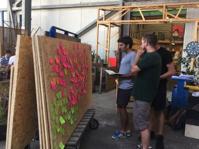 L’atelier collectif Faire vite ! démarre son deuxième jour et les participant·e·s arrêtent deux problématiques : Comment rendre l’invisible visible ? et comment s’adapter rapidement aux nouvelles gestions de ressource climatique ? Prochaine étape : répondre à ces 2 problématiques à travers la fabrication d’éléments de piratage urbain et artistique.