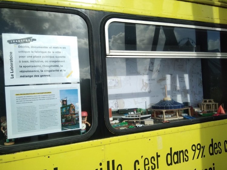 Le bus Jaune est investi par l’équipe du Laboratoire afin de révéler les expérimentations autour de Transfert. À découvrir à travers les vitres : des extraits du rapport d’évaluation 1 et 2, des études menées et des différentes Rencontres Éclairées mais aussi des éléments des premières maquettes de Transfert. L’ANPU s’est également emparé de cet espace pour commencer à mettre en lumière son diagnostic “psychanalytique” de Transfert, de son territoire et des ses origines.