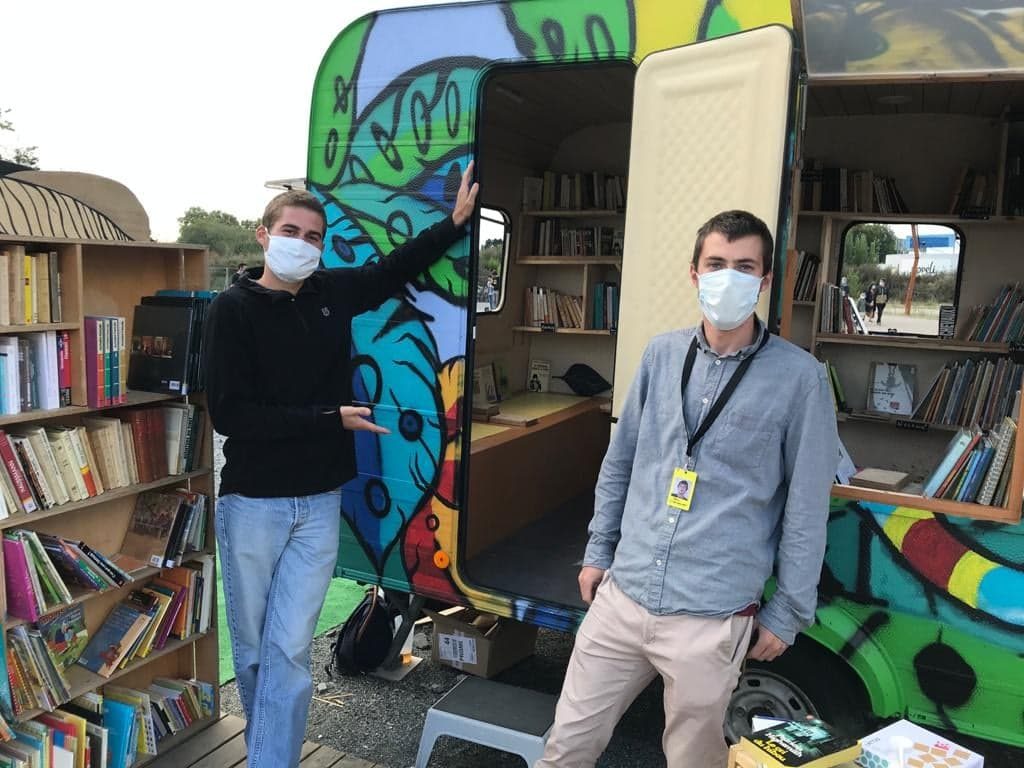 La caravane bibliothèque tient toutes ses promesses. Paul, aux manettes de celle-ci, a proposé des livres pour les petit.e.s et les grand.e.s ainsi que des jeux. Les familles sont ravies de découvrir ce nouvel espace idéalement situé près du bus boutique.