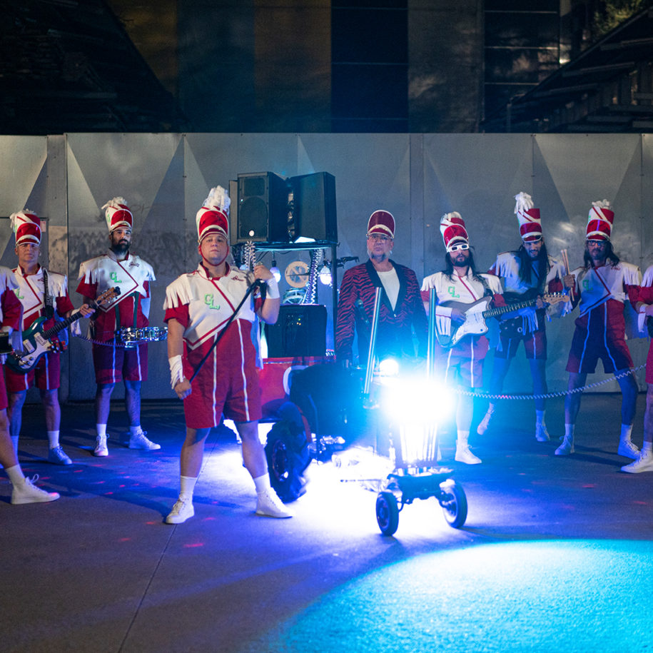 Au fil d’une déambulation au long cours, le régiment électrique et costumé ainsi formé s’amuse à reprendre des standards connus – Heroes de David Bowie, Hey Ya d’Outkast, Bitter Sweet Symphony de The Verve… – ou non – The Cars et leur Just What I needed – de la planète pop. L’important pour le public n’est pas de connaître ou reconnaître tel ou tel tube ; mais bel et bien de marcher dans les pas d’une fanfare aussi folle que surprenante et entraînante.