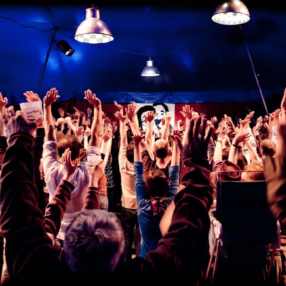Avec Le Bal où l’on écoute la musique avec ses pieds, La Piste à Dansoire nous fait guincher et voyager en revisitant les guinguettes d’autrefois : valse, tango, cercle circassien, mazurka, forró et madison s’enchaînent sous les guirlandes chatoyantes. Sur le parquet, vous pouvez danser et apprendre à danser, inviter ou être invité. Ici on danse seul, à deux, à dix, à tous ; en cercle, en ligne, en carré, en foule… Le Bal, c’est un grand jeu collectif orchestré par les musiciens et les meneurs de piste : une chorégraphie express où se mêlent danseurs d’un soir, danseurs d’une vie ou d’une envie.