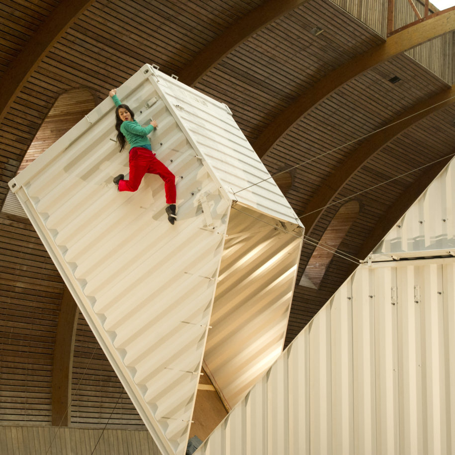 et leurs attrait immodéré pour les Containers. En s’inspirant de la pratique de l’origami ils métamorphosent un container de 40 pieds de l’état d’objet mondialisé et mondialisateur à un objet générant de nouvelles relations à échelle humaine et personnalisé : entre autre la danse, elle-même moteur de l’Origami.