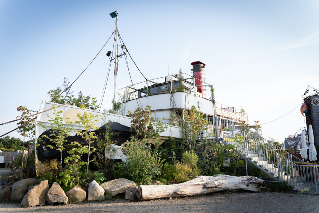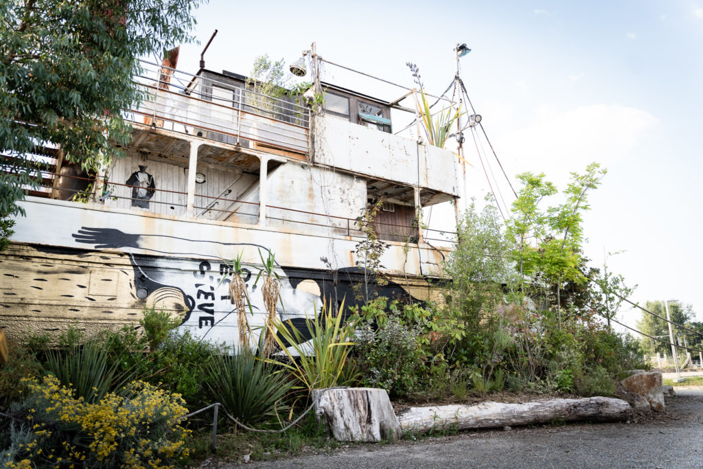 Symbole de fête et de la culture nocturne nantaise, le Remorqueur semble être en sommeil, comme abandonné depuis longtemps. La végétation prend d’assaut ce territoire propice à l’Exploration Urbaine. La nature est ici un repère, elle raconte une autre échelle du temps où l’humanité s’efface : les plantes et leur cortège du vivant reprennent toute leur ampleur et mettent en perspective nos existences afin de :