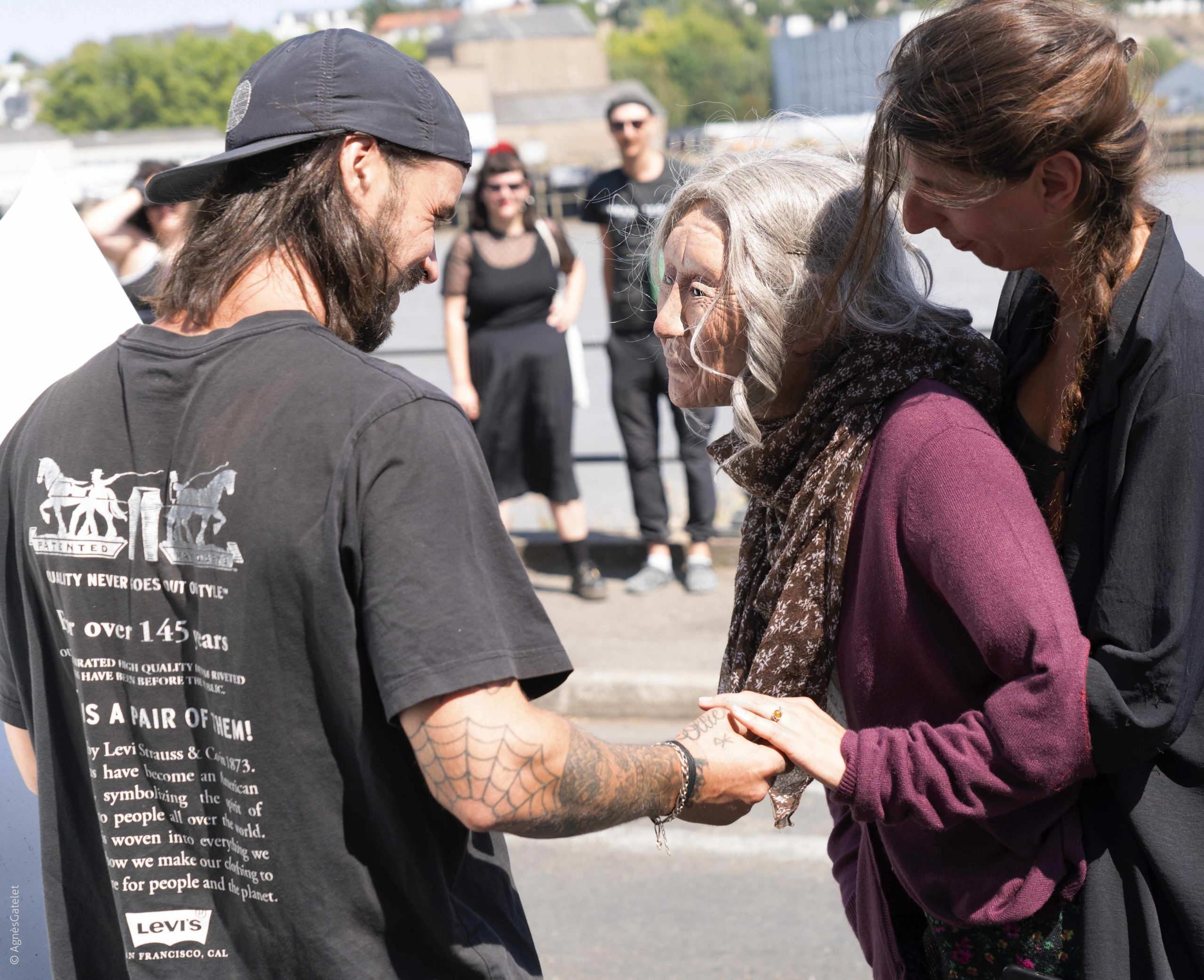 Au départ, c’était plutôt un personnage qui venait refléter, dans sa solitude, la vieillesse, mais les gens ont vraiment fait une place à cette marionnette. Nous ne le savions pas, mais dans le silence, le public est encore plus force de proposition. Les commerçant·es l’interpellent et lui demandent de venir, le barman lui paie un café, etc. Louisa constitue un objet transitionnel avec qui les gens, avec un cœur d’enfant, jouent le jeu, comme si le personnage existait réellement.