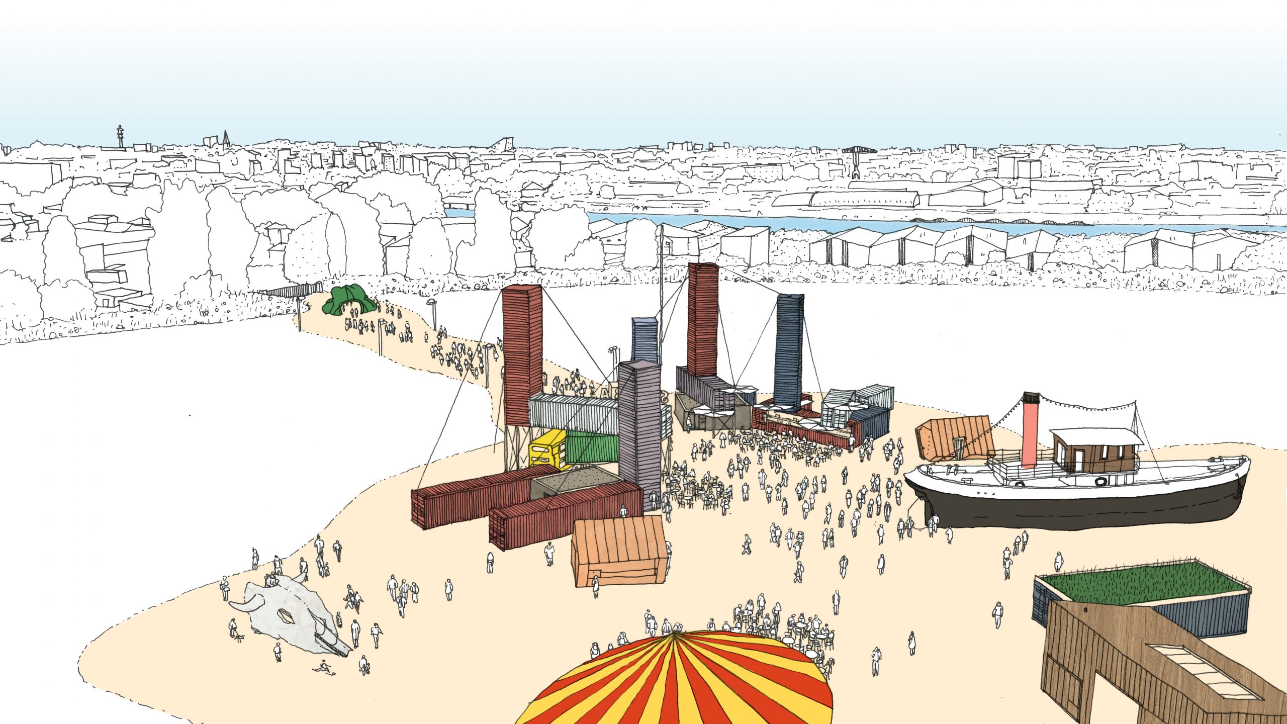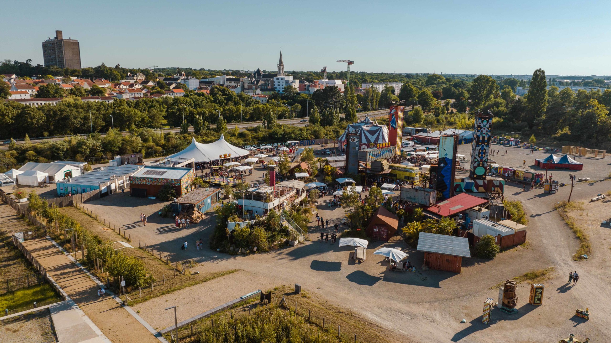 Dans l’attente de la construction du nouveau quartier des Isles, Pick Up Production a piloté ce projet artistique et culturel expérimental sous la forme d’une cité éphémère. Il s’agissait pour l’association de proposer un espace qui interroge la place des artistes dans la fabrique de la ville et inversement.